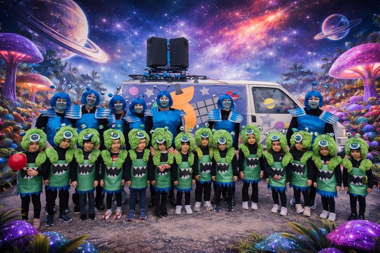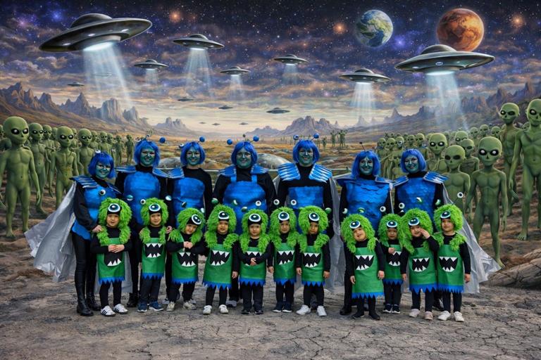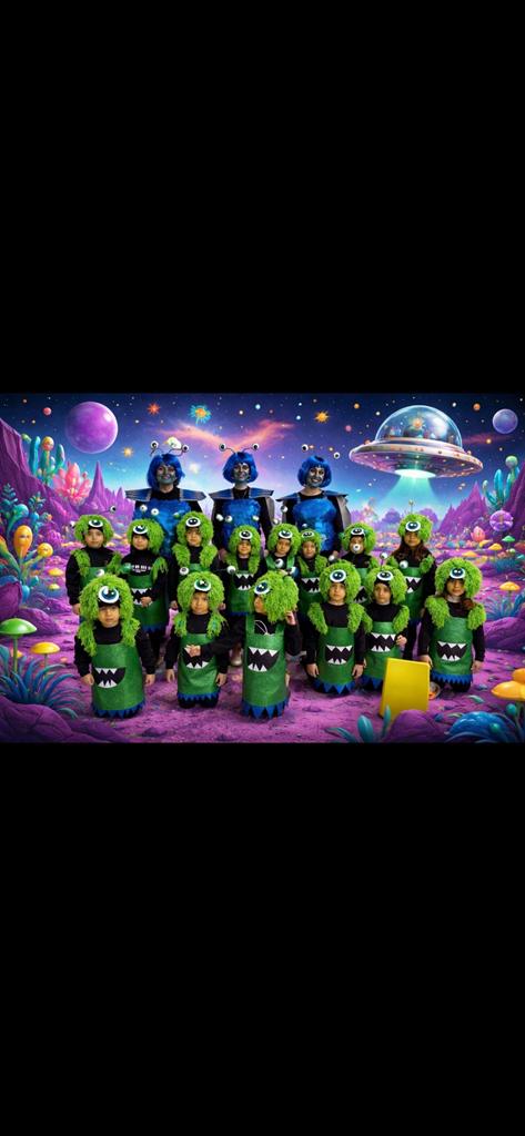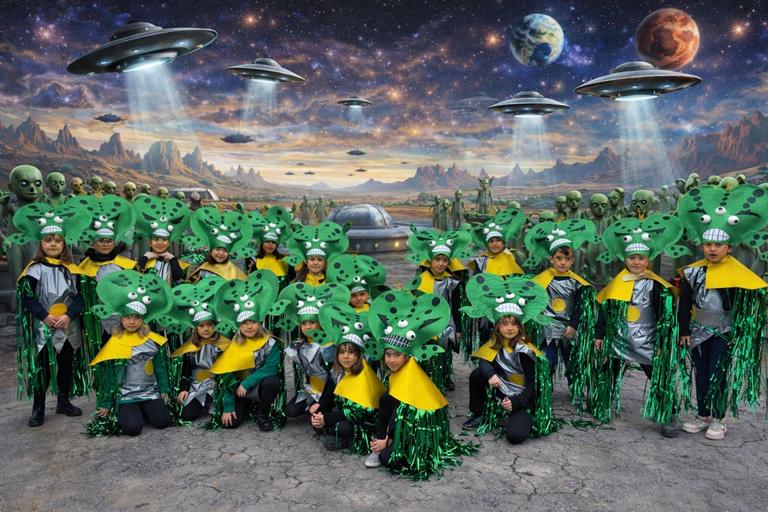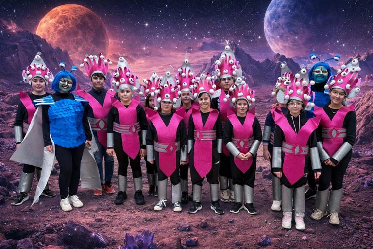 Os compartimos las fotos grupales de nuestro Carnaval, ahora con un toque muy especial: fondos de extraterrestres y paisajes de otro planeta que hacen aún más mágica la experiencia.