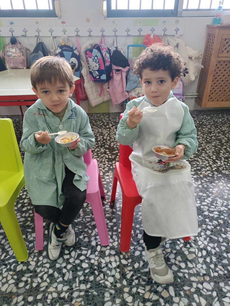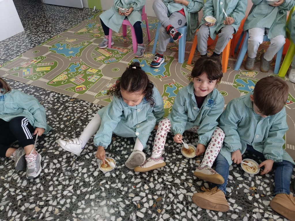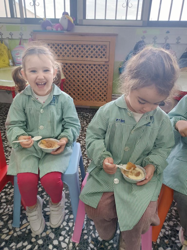 Los peques de Infantil han conocido hoy un postre típico de estas fechas: las gachas.